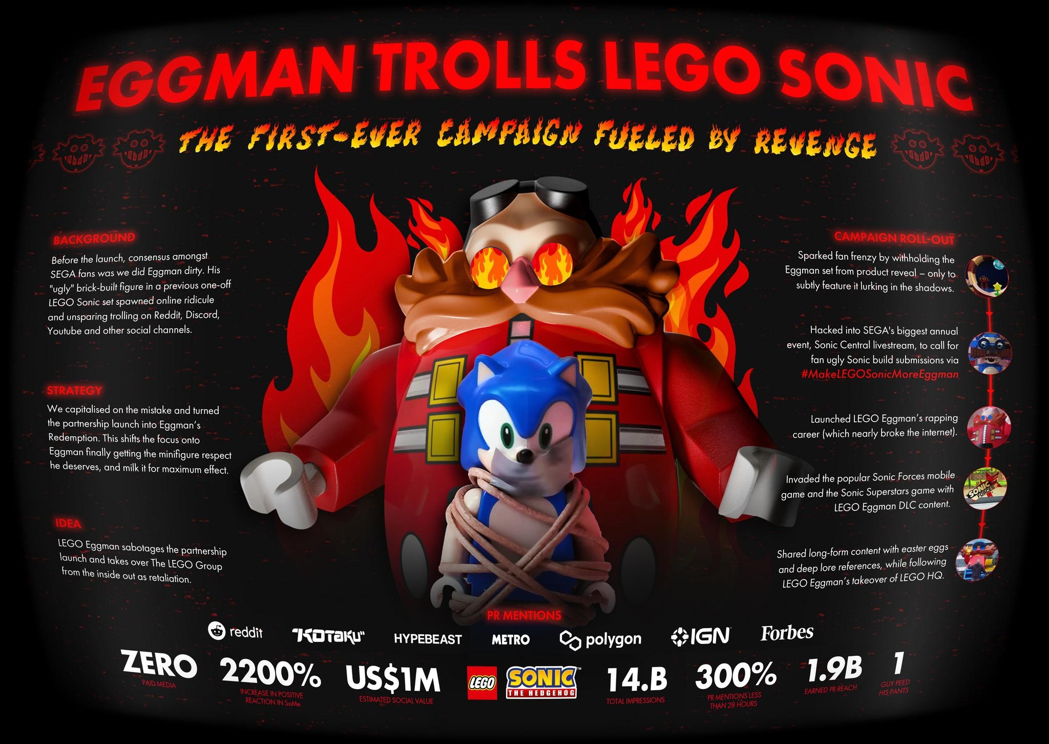 The idea was to lean into the joke. We gave the long-ridiculed brick-built Dr Eggman a glow-up as a minifigure and a villain arc worth following. “What Would Eggman Do?” became our creative compass as he sabotaged the LEGO Sonic launch across PR, influencer drops, SEGA’s Sonic Central livestream, in-game takeovers, and long-form content laced with easter eggs for the die-hards.